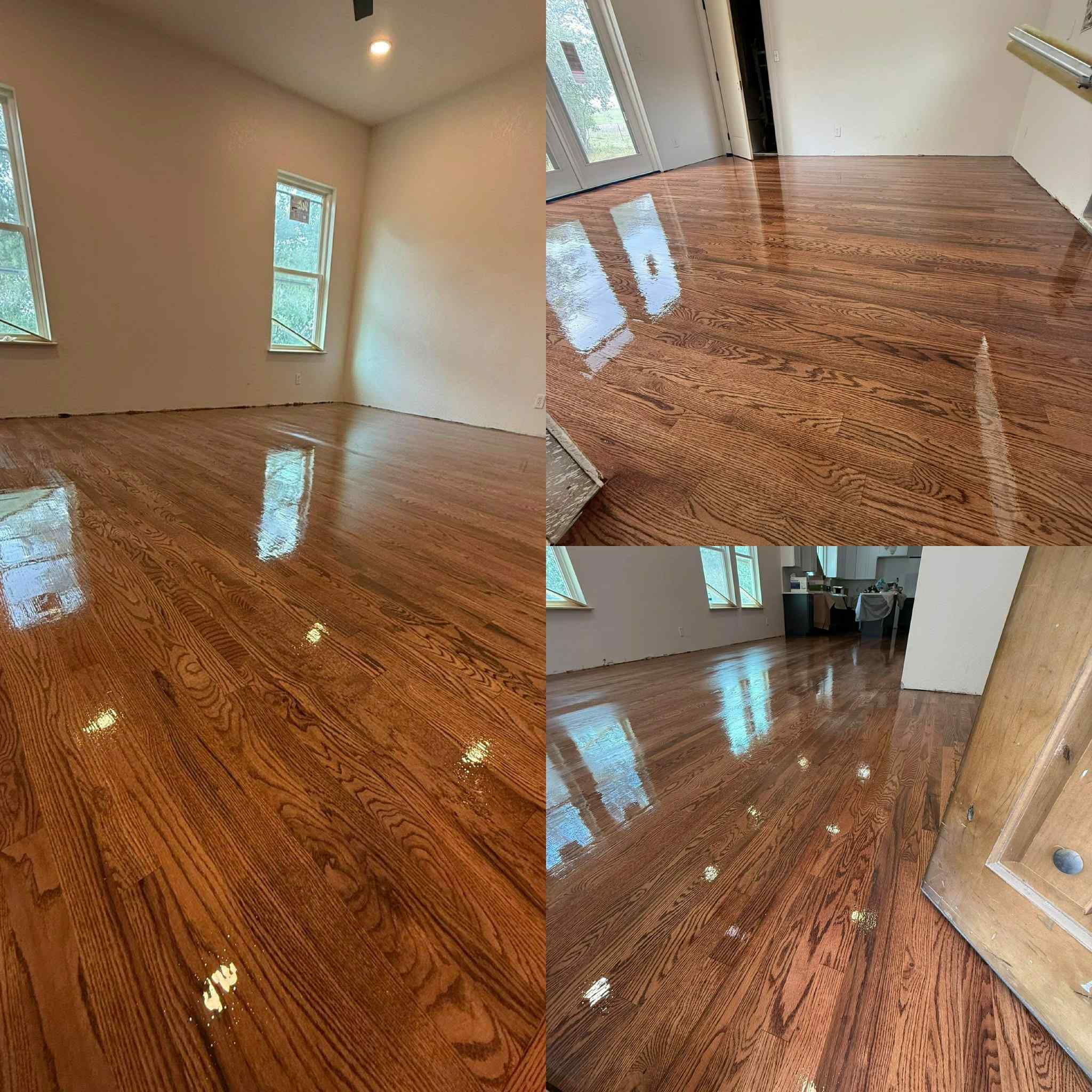 This process involves lightly buffing (screening) the existing finish to remove minor imperfections and prepare the surface for a new protective coat. By applying a fresh layer of finish, we restore the floor’s shine and extend its lifespan while preserving the original wood.